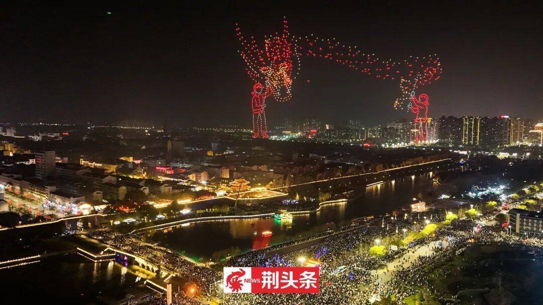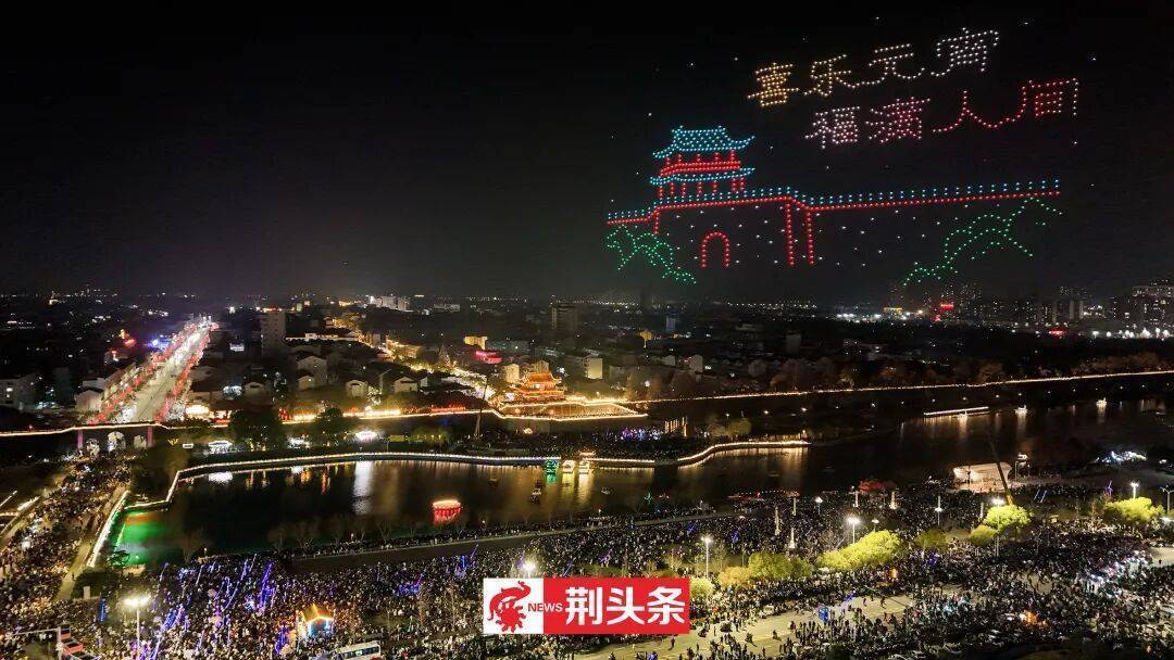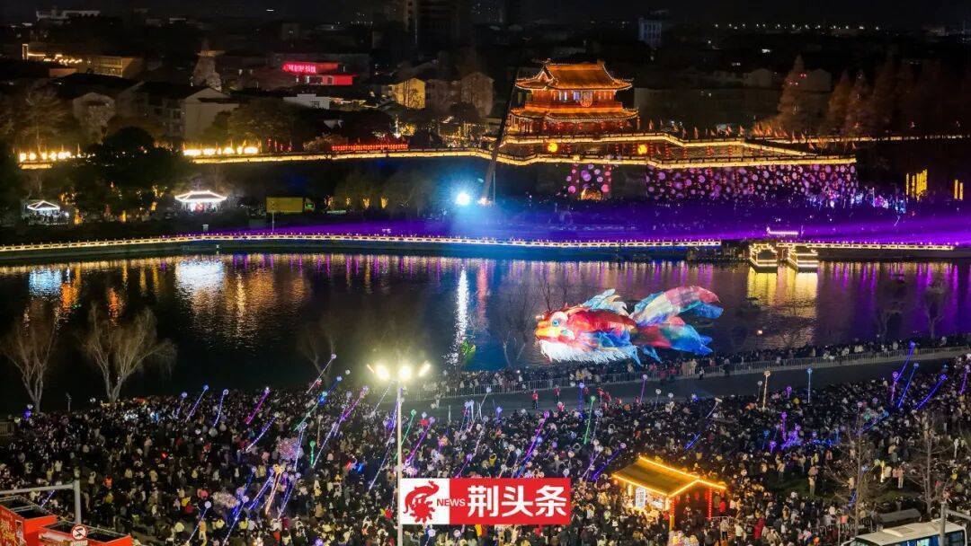 这一夜的荆州,火树银花映宾阳飞檐,凤舞星图绘楚韵华章,为市民游客留下难忘的元宵记忆。