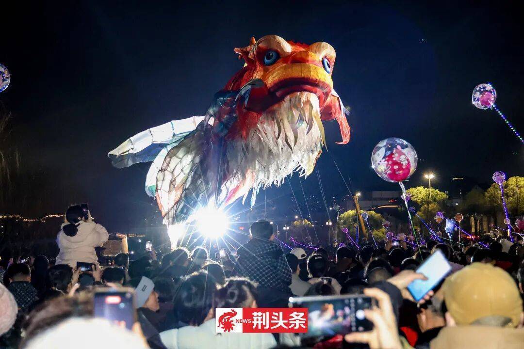 “鳌鱼是中国传统中的瑞兽,是祥瑞吉庆的象征,今天看着鳌鱼在人群上方游弋,非常的灵动梦幻,也祝大家在新的一年能够在各自的领域独占鳌头。”从监利赶来的游客杨杨激动地说。