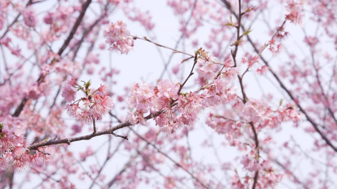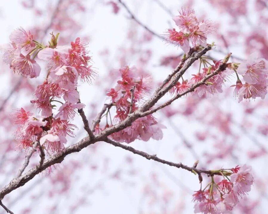 粉白相间的樱花缀满枝头