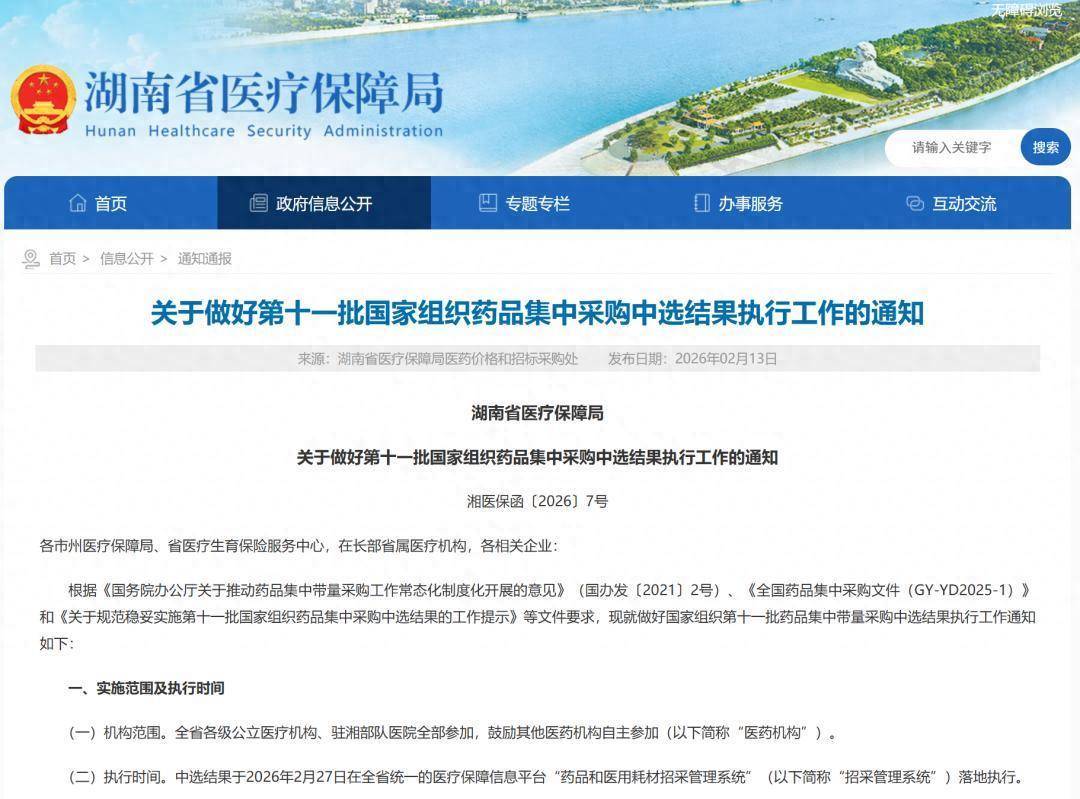 2月27日,第十一批国家组织药品集中采购中选结果在湖南省正式落地执行。本次集采共纳入55种药品且全部采购成功,涵盖抗感染、抗过敏、抗肿瘤、降血糖等多个临床常用领域。