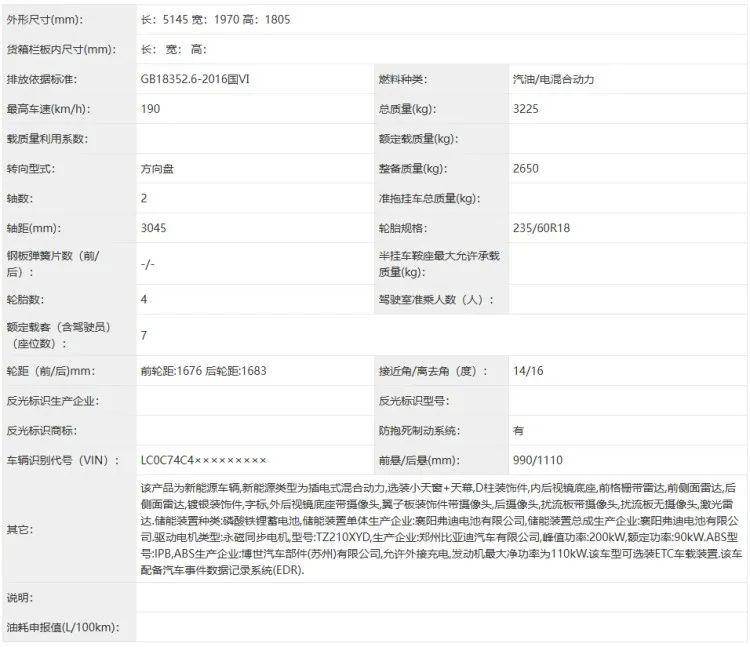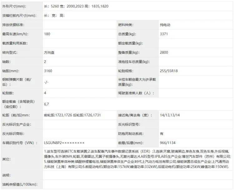 别克至境世家基于全新的逍遥架构打造,会有6座和7座选择,动力方面也会提供纯电和插混两种形式,此次申报的是纯电版本,搭载前后双电机,电机功率分别为332千瓦和150千瓦,并且使用了宁德时代磷酸铁锂电池。
